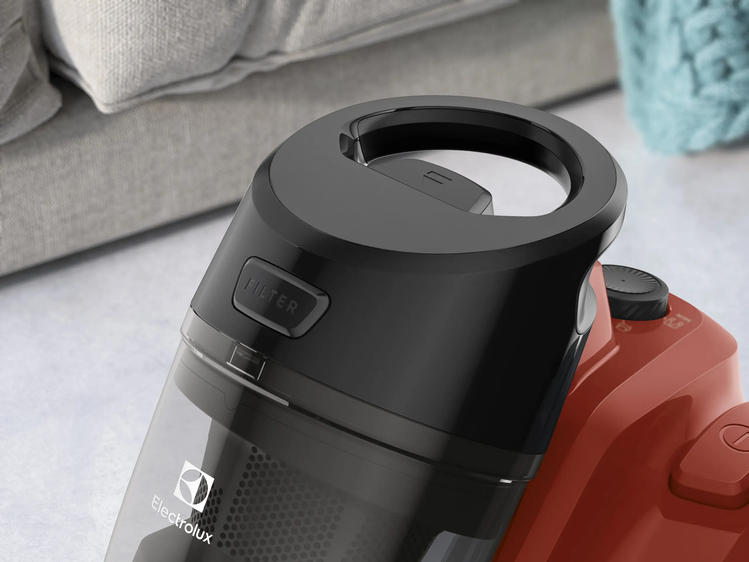 S vysavačem Ease C4 se opětovného rozptýlení prachu do vzduchu bát nemusíte. Vyprázdnit nádobu lze jednoduše stisknutím jediného tlačítka, což ocení nejen alergici. Nádobu s objemem 1,8 l není navíc potřeba vyprazdňovat po každém vysávání.