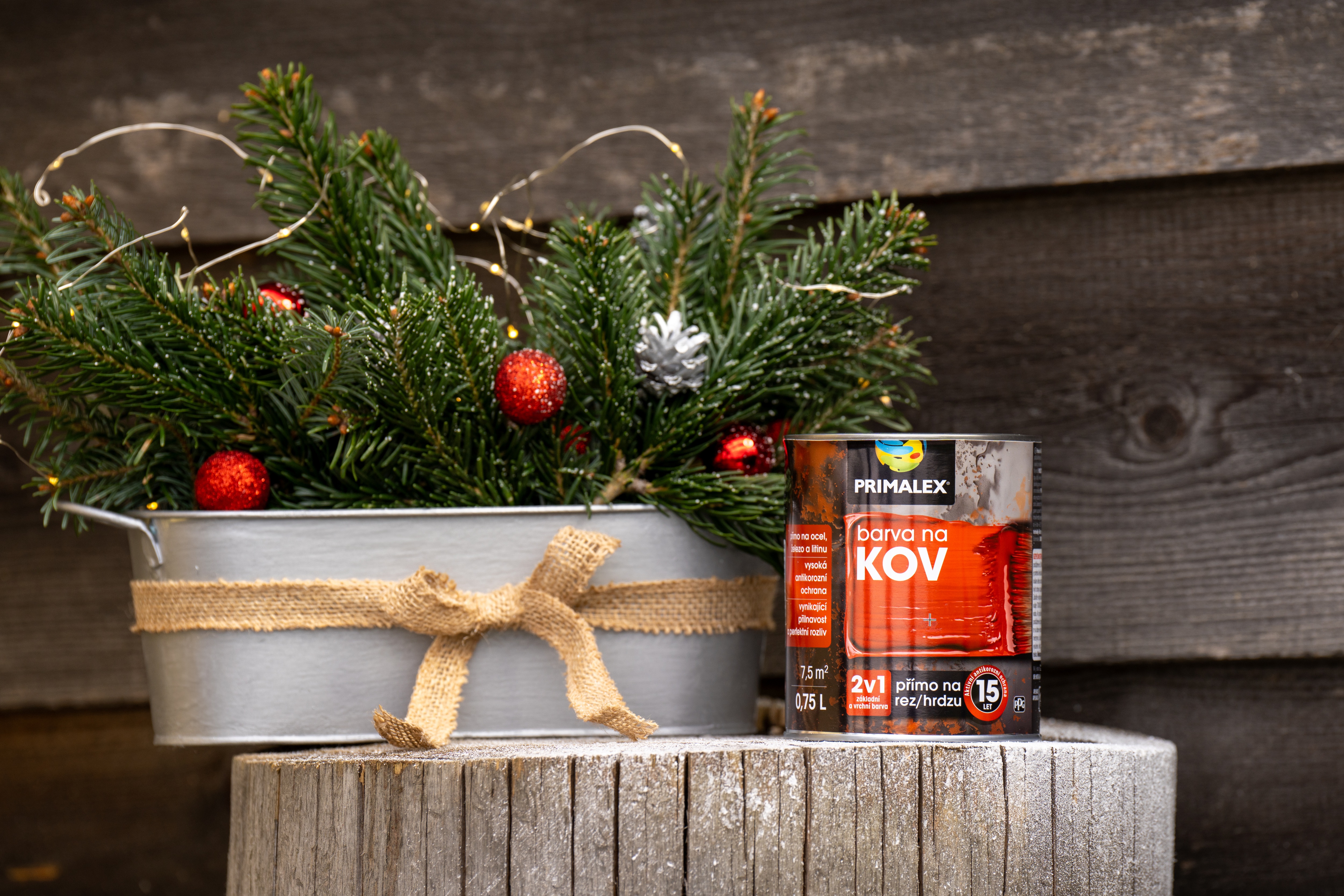 Jsou vaše okna od jara do podzimu plná květin? Ani v chladném a mrazivém období nemusí zůstat prázdná! Postavte na parapet truhlík, který nebude vyžadovat slunce, teplo ani vláhu. Natřete ho speciální barvou na kov od značky Primalex a vyzdobte jehličnatými větvemi, šiškami nebo světýlky.