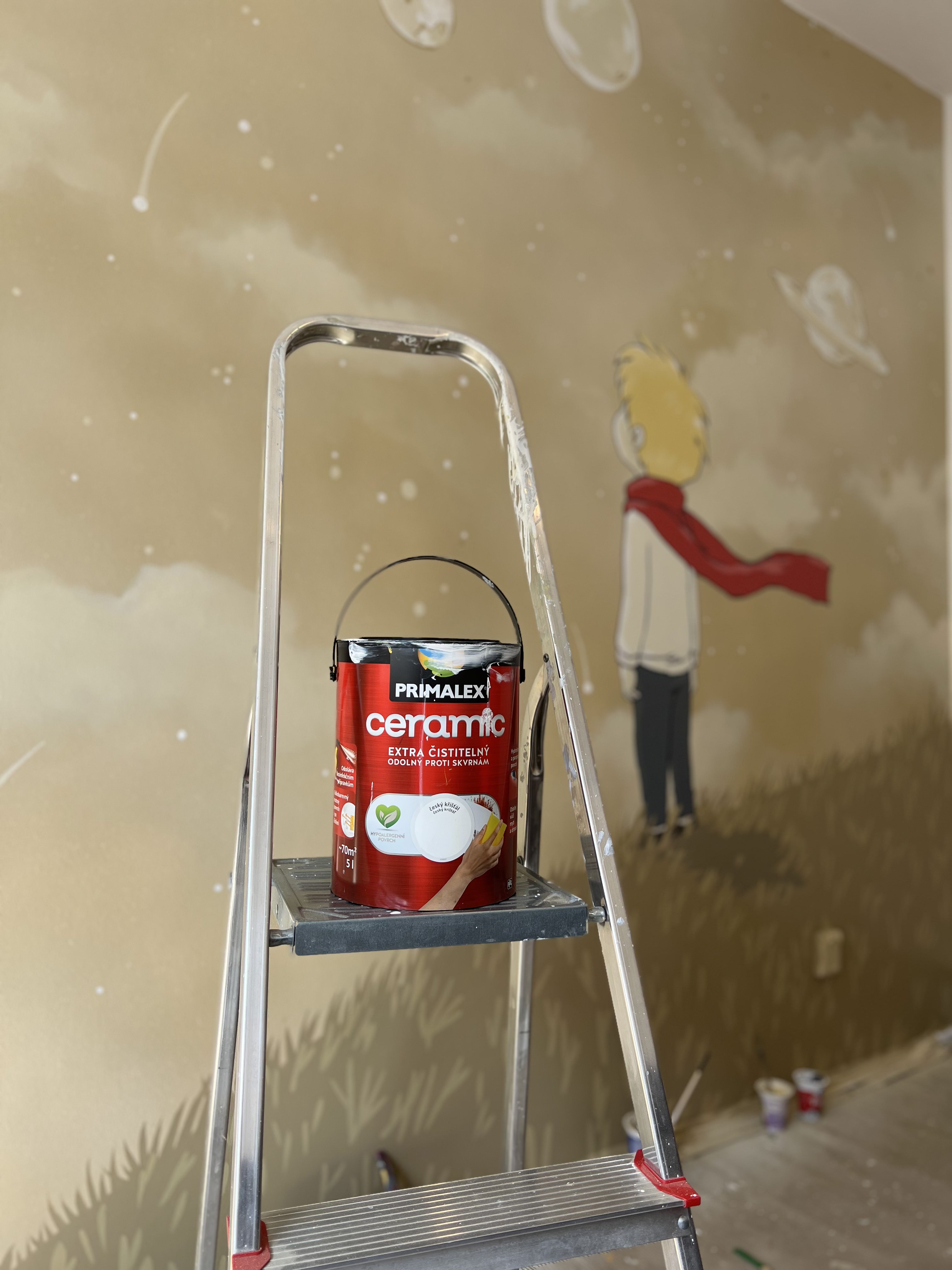 Nejprve začněte barevným pozadím. Na výmalbu celé stěny použijte malířský váleček nebo speciální stříkací pistoli. Malířskou barvu před použitím důkladně promíchejte. Nanášejte ji ve dvou vrstvách s odstupem alespoň 6 hodin. „Do dětského pokoje doporučuji zvolit kvalitní čistitelný nátěr. Například Primalex Ceramic, který vytváří odolný, paropropustný, stálobarevný a krásně matný povrch. Tento vnitřní nátěr si navíc můžete nechat natónovat až do 20 000 odstínů,“ dodává Radek Kříž.